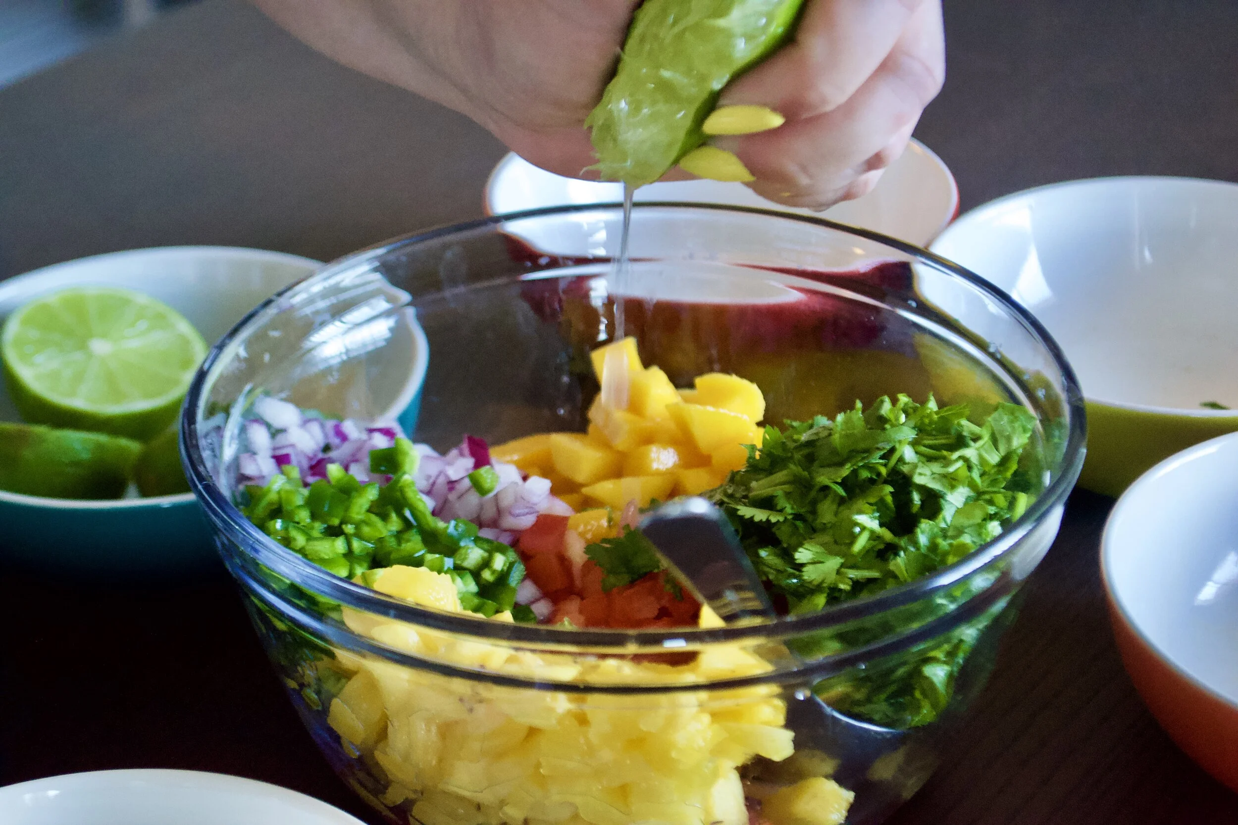 Add ingredients to a bowl and mix with lime juice and salt to taste