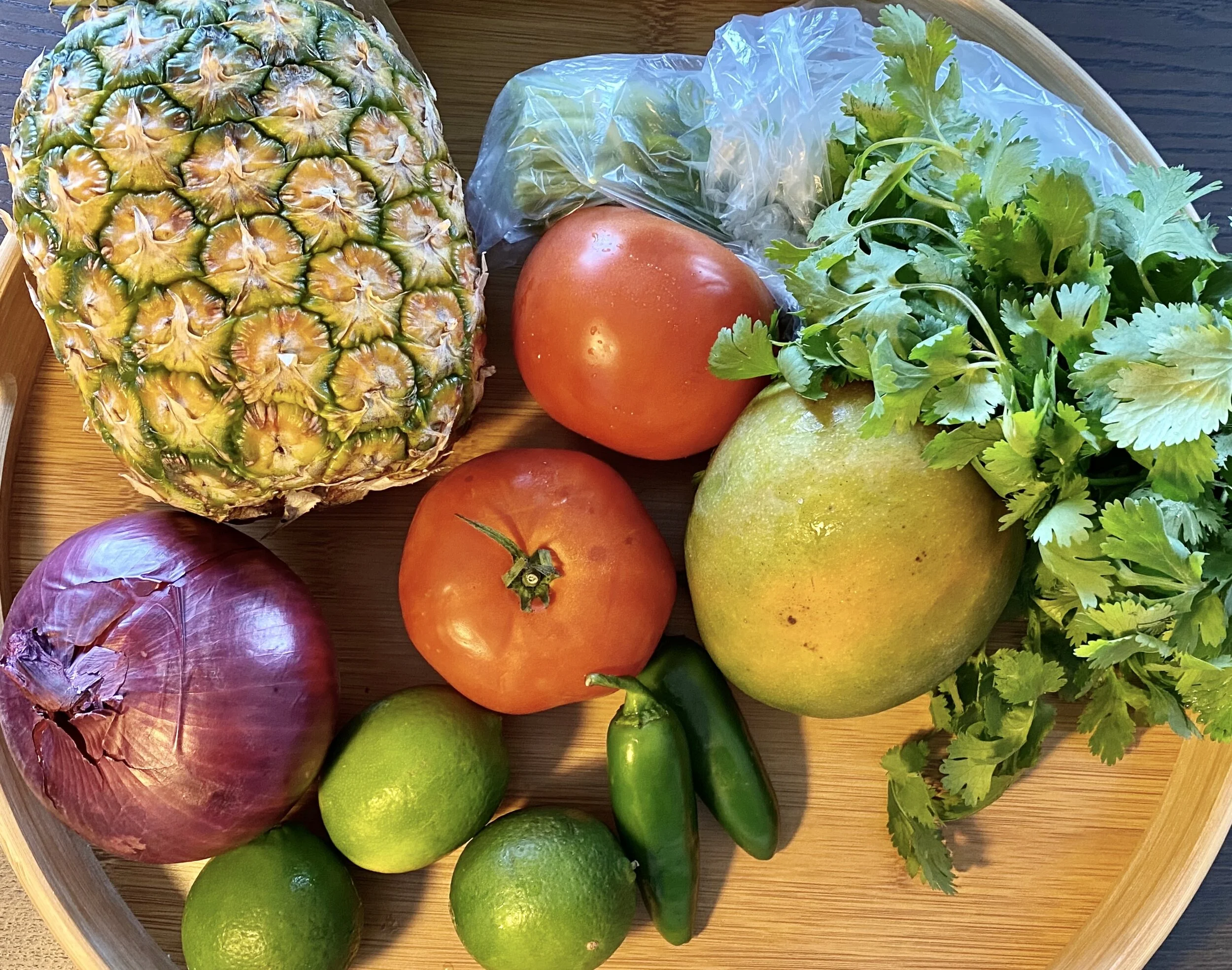Roughly dice tomatoes, mango, pineapple and cilantro (I know cilantro is controversial but trust me it is perfect in this recipe)